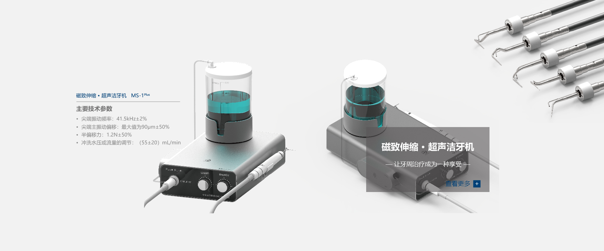 公司致力于磁致伸縮及數字影像技術在口腔醫療器械領域 的應用,目前擁有3項發明專利、5項實用新型專利和2項 外觀專利。公司當前主營產品為牙周治療移動工作站,具 體包括磁致伸縮·超聲潔牙機、高清晰度·數字口腔觀察儀 、全向轉動·多功能移動醫療推車及配套耗材。